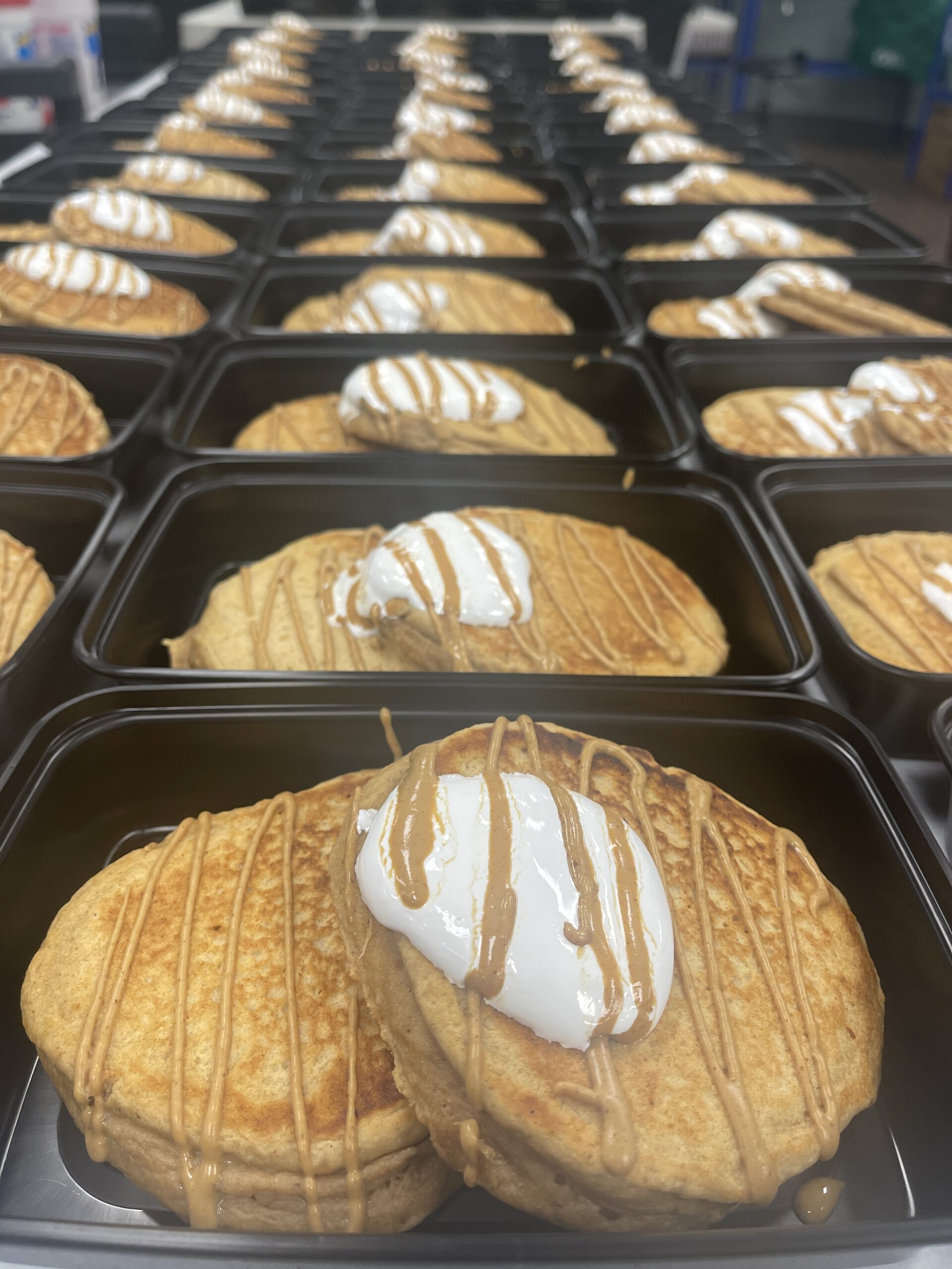 Our signature whole grain peanut butter protein pancakes, topped with marshmallow fluff and a house made low fat peanut butter sauce, and served with optional turkey bacon on the side.